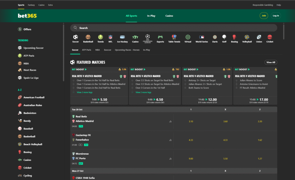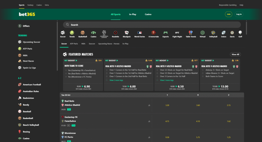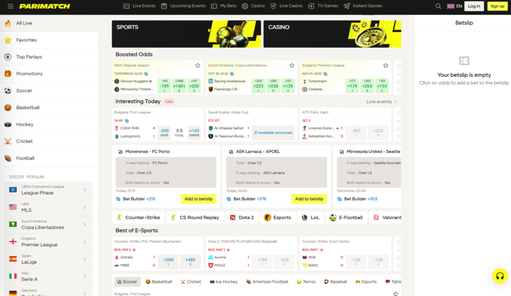 • Live Betting: Real-time wagering on worldwide sporting events